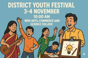 जिल्ह्यातील तरुणाईच्या सर्वांगीण विकासाला चालना देत सांस्कृतिक वारसा, परंपरा आणि नवोन्मेष जपण्यासाठी दरवर्षी युवा महोत्सवाचे आयोजन केले जाते. त्यानुसार येत्या ३ व ४ नोव्हेंबर रोजी सकाळी १० वाजता न्यू आर्ट्स, कॉमर्स अँड सायन्स कॉलेज, अहिल्यानगर येथे जिल्हास्तर युवा महोत्सवाचे भव्य आयोजन करण्यात येणार असल्याची माहिती जिल्हा क्रीडा अधिकारी ज्ञानेश्वर खुरंगे यांनी दिली.