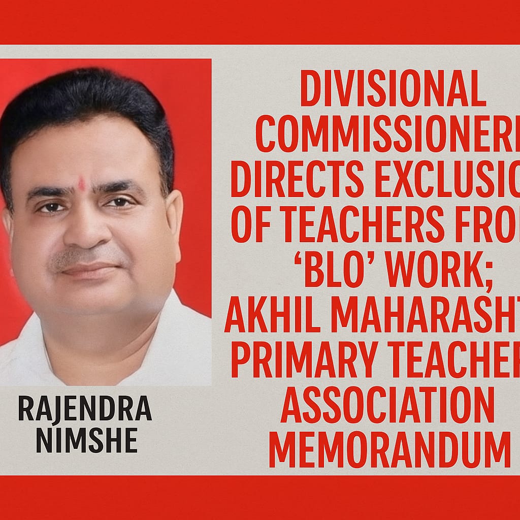 अहिल्यानगर : शिक्षकांना मतदान केंद्रस्तरीय अधिकारी (बीएलओ ) या निवडणूक विषयक निरंतर चालणाऱ्या अशैक्षणिक कामातून पूर्णपणे वगळण्याबाबतचे निवेदन विभागीय आयुक्त नाशिक यांना अखिल महाराष्ट्र प्राथमिक शिक्षक संघाने २४ जून २०२५ रोजी दिले होते .याच निवेदनानुसार विभागीय आयुक्तांनी २५ सप्टेंबर २०२५ रोजी नाशिक,धुळे,जळगाव,अहिल्यानगर व नंदुरबार या जिल्हाधिकारी यांना संबंधित शासन निर्णयानुसार कार्यवाही करण्याचे निर्देश दिल्याची माहिती…